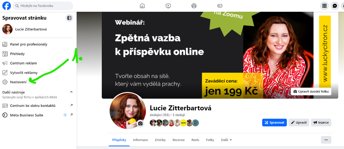 1. Krok: nastavení ve správě stránky