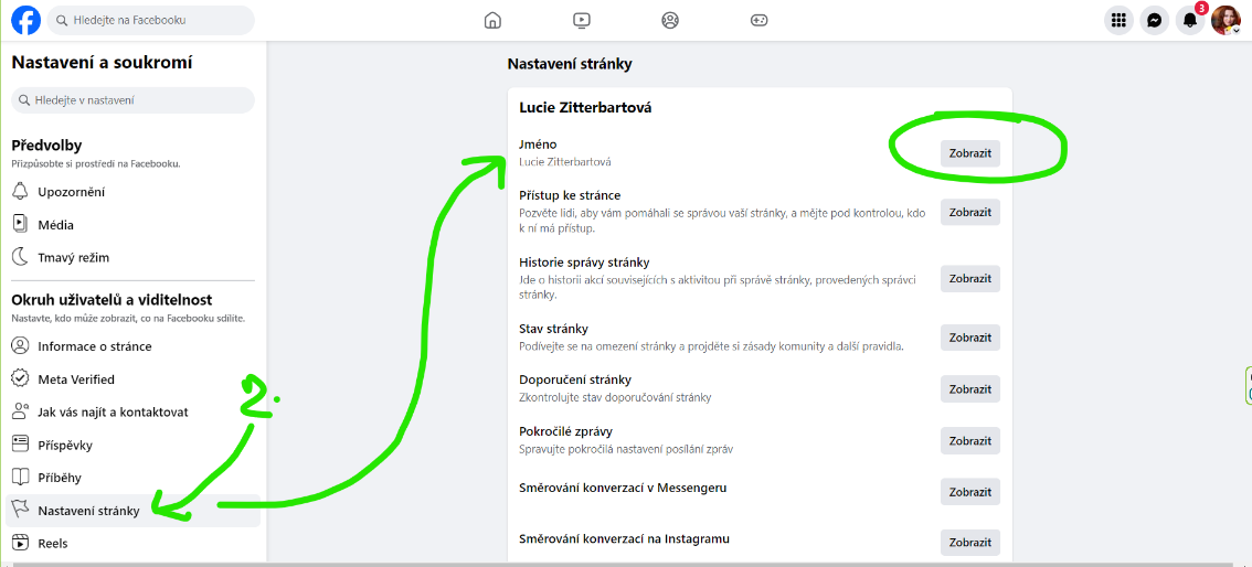 změna názvu profilu na fb - krok 1