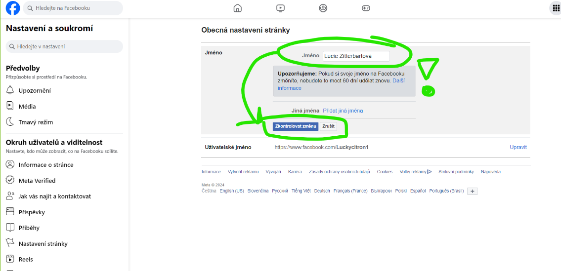 změna názvu profilu na fb - krok 2